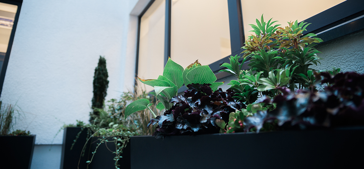 Mit dem Wunsch nach einer individuellen und ästhetischen Gestaltung zweier Lichthöfe in der Leipziger Innenstadt traten die Auftraggeber an uns heran. Robuste Pflanzkübel sollten mit Pflanzen versehen werden, die den doch nicht ganz optimalen Lichtbedingungen trotzen und einen Blickfang aus den Räumlichkeiten darstellen.