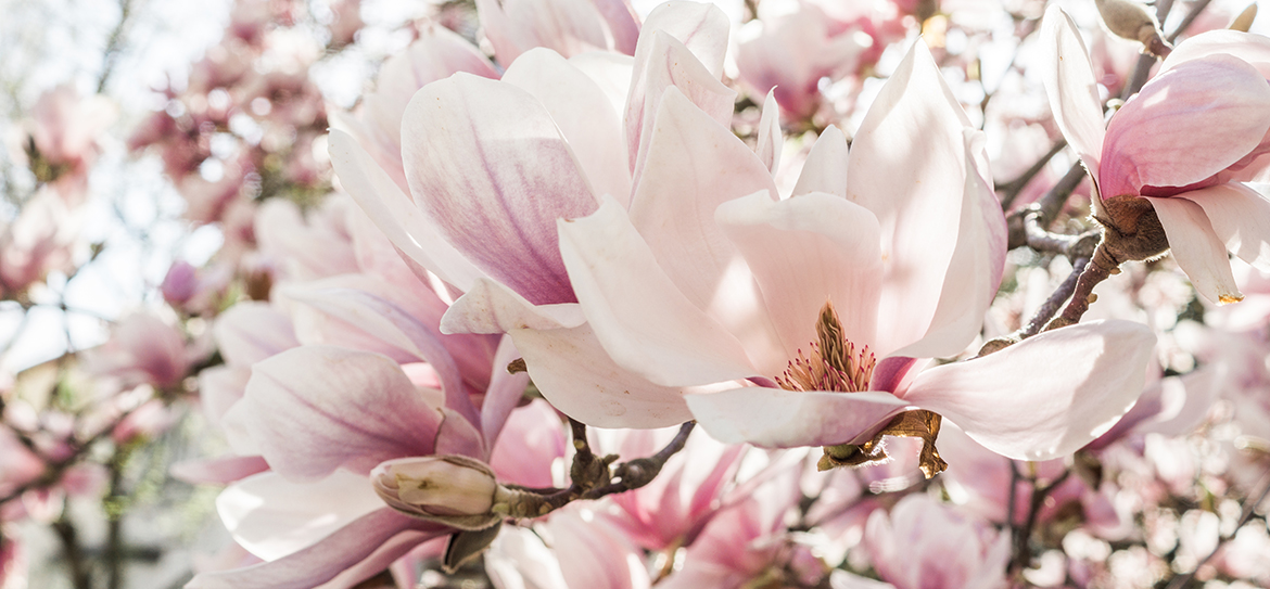 In unserem kleinen Blog-Eintrag möchten wir - eben weil sie in unseren Gärten so häufig vorkommt - auf die Tulpenmagnolie eingehen. Je nach Klima besticht sie zwischen März und Mai mit dem knorrigen Geäst und der malerischen Blütenpracht - ganz so wie auf einer asiatischen Zeichnung. An den noch unbelaubten Ästen bilden sich bereits im Winter pelzige Knospen, die aufplatzen und dann den ersten Blick auf die Blütenblätter freigeben. Die dickfleischige, porzellanartige Blütenpracht, die an Tulpen erinnert, dauert dann nur wenige Tage und strahlt in makellosem Weiß, über zarte Rosétöne bis hin zu violetten Einfärbungen. Nach der kurzen, reichlichen Blüte zeigen sich dann länglich-ovale Blätter, an deren Unterseite feine Härchen bilden. Diese sind mattgrün und können bis zu 20cm groß werden.