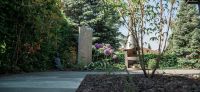 Bei der Bepflanzung haben wir Gräser und zartblühende Stauden zusammengestellt, die miteinander wunderbar harmonieren und sich in Form und Farbe ergänzen. Im Bereich der Terrasse haben wir Riesen-Lauch (Allium giganteum) gepflanzt, umringt von Japangras (Hakonechloa). Als Hinterpflanzung der Glaswand griffen wir auf Reitgras (Calamagrostis) zurück. Entlang des neuen Weges, der rund um das Haus führt, kann man beispielsweise das zarte Kaukasus-Vergissmeinnicht (Brunnera macrophylla), adrette Morgenstern-Seggen (Carex grayi), attraktive Elfenblumen (Epimedium), zauberhaftes Fingerkraut (Potentilla tridentata 'Nuuk'), leuchtend blauen Salbei (Salvia nemorosa), Federborstengras (Pennisetum alopecuroides), rotblättriges Silberglöckchen (Heuchera micrantha), strahlend gelben Sonnenhut (Rudbeckia fulgida var. sullivantii 'Goldsturm') und viele weitere Blüten- und Gräserträume entdecken.