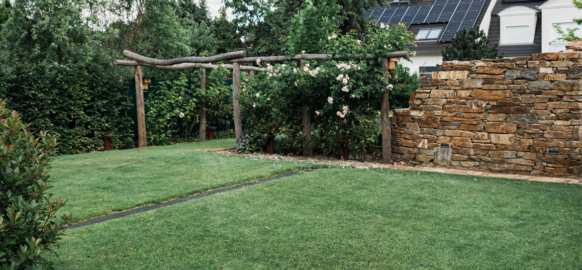 Eine automatische Bewässerung und ein Mähroboter erleichtern die Pflege und machen den Garten zu einem Ort, der Schönheit, Funktionalität und Nachhaltigkeit vereint.